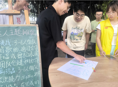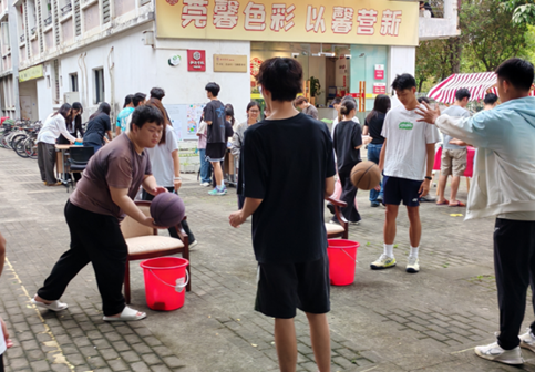 活动设置了多个主题摊位,包括“团结友爱”“才艺达人”“环保(节约)达人”“体育达人”“学业标兵”和“图书漂流”等,同学们在轻松愉快的氛围中增进交流、提升合作意识。在“才艺达人”区,大家共同完成绘画创作,用色彩描绘宿舍生活的美好;在“学业标兵”区,室友们一起制定学习计划,相互督促成长;而“体育达人”区的投篮挑战和“团结友爱区”的盲人摸象游戏,则让同学们在欢笑中放松身心,体会到有效沟通的重要性。