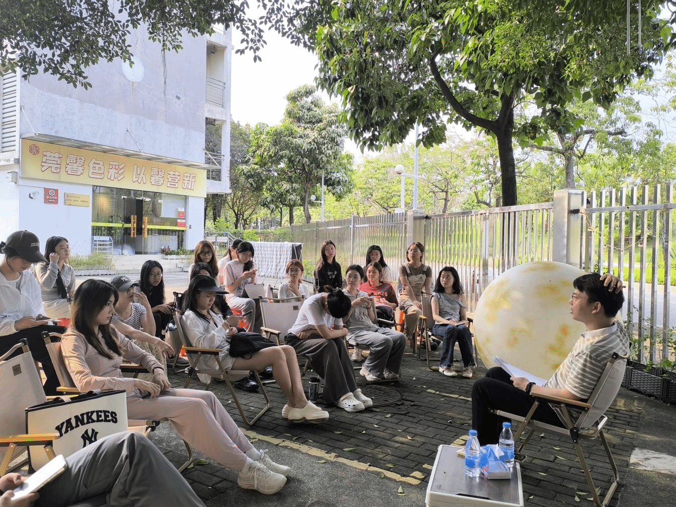 422日下午,一场别开生面的党课在学生社区莞馨社区的榕树下举行。本次活动以扎根对00后到底意味着什么为主题,采用户外围坐、互动对话的形式,没有讲台,没有PPT,营造出轻松而真诚的交流氛围。