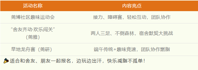 为推动大学生体质提升、促进心理健康与减脂塑形,近日,我校各分院围绕“夏日减脂”主题,发布了一系列社区体育类活动预告。活动涵盖体质提升、心理健康、趣味运动等多个方向,旨在鼓励学生走出宿舍、积极参与体育锻炼,养成终身运动习惯。